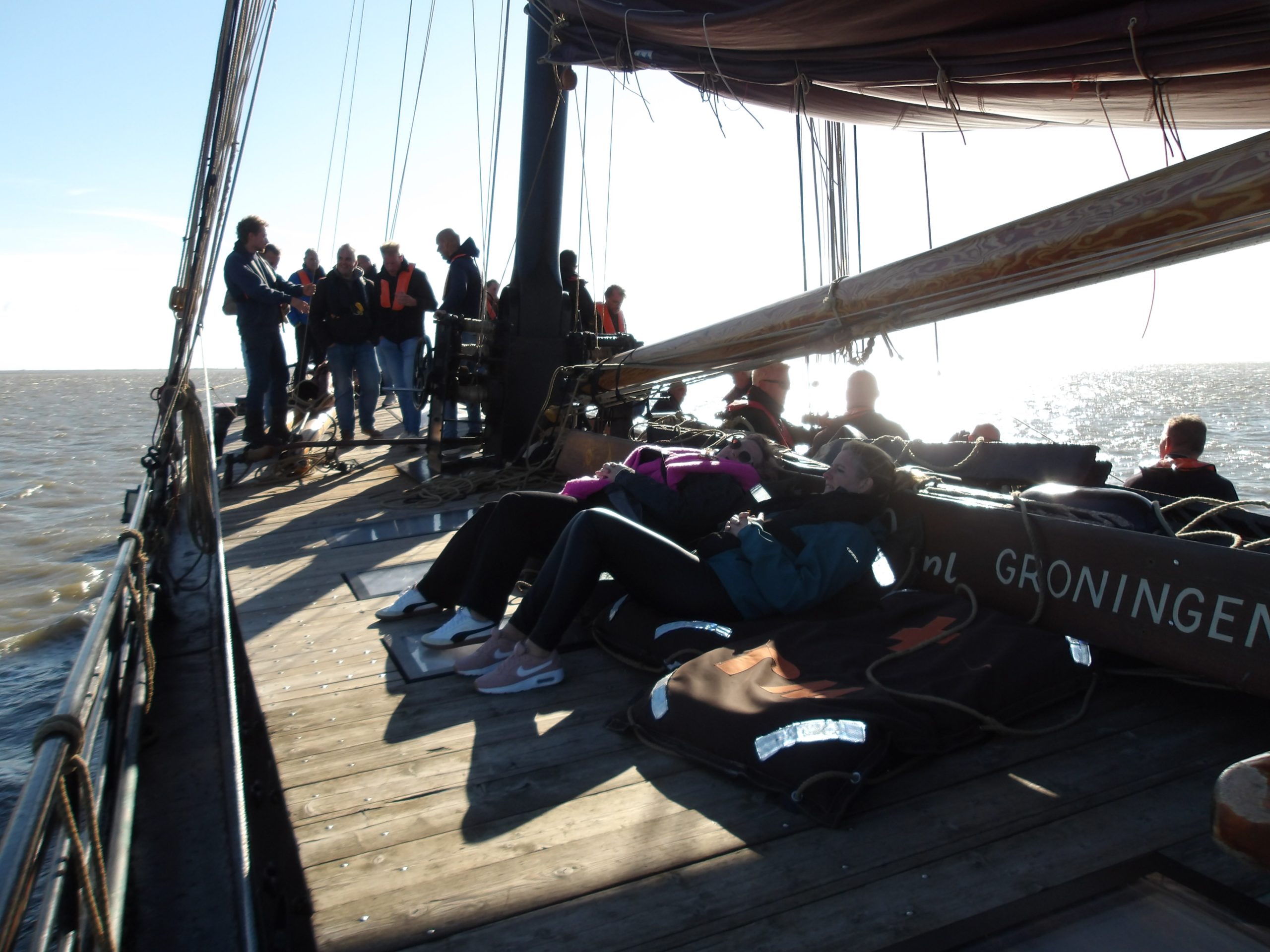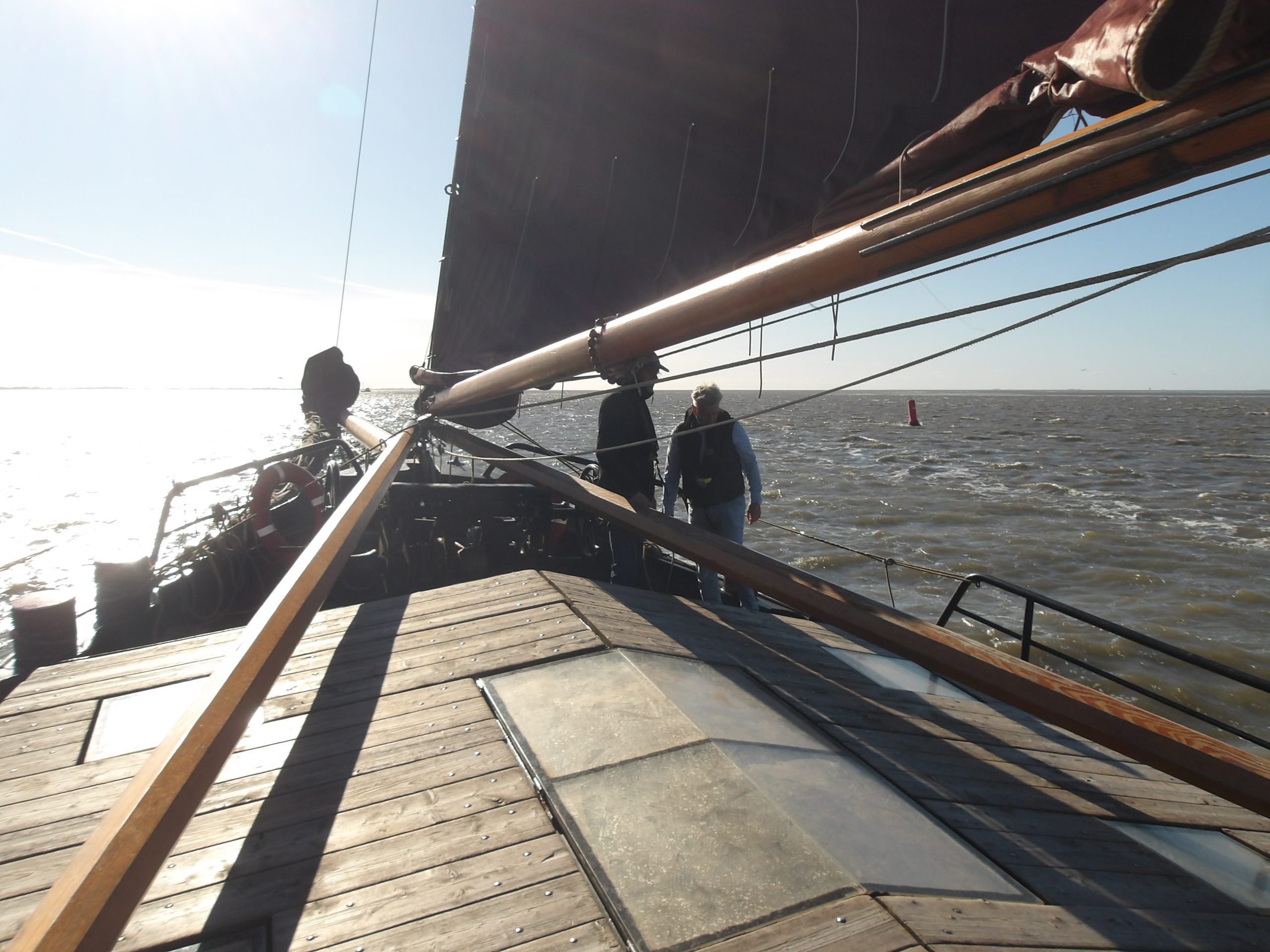 De Willem Jacob heeft nog steeds de mooie houten luikenkap die afstamt van de periode dat ze met vracht voer. Ze zijn gemaakt van mooi verweerd, grijs hout. Je kunt er op zitten, lopen en ook heerlijk in de zon liggen. Er is volop ruimte. Op het achterdek zijn comfortabele bankjes. Hier kunt u rustig en veilig genieten van de activiteiten aan dek. De schipper staat hier ook aan het stuurwiel, en kan u van alles uitleggen over het schip en wat er om ons heen gebeurt.